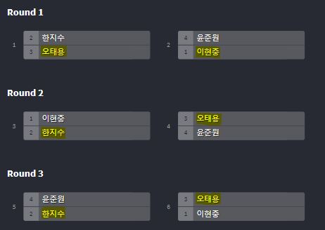 1위 오태용 2위 한지수 3위 이현중 4위 윤준원